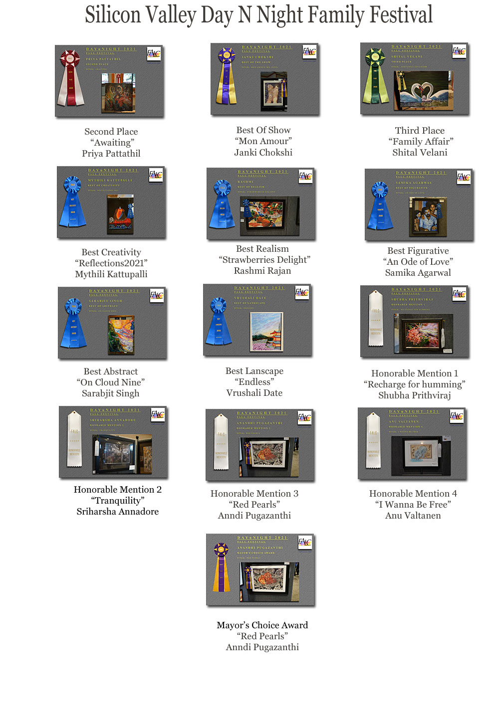 2021 Marked the 13th Annual UArt Open, and the 2nd UArt Open Virtual Exhibition: There were more than 300 submissions in the five categories: Oil, Acrylic, Drawing, Pastel, Watercolor, Mixed Media and Emerging Artists, and it was a real challenge for our juror to narrow the field to the best of the best. Those of you who attended the virtual presentation Friday afternoon, 10/22/2021, got to hear juror George Riveras explanation as to why each winning piece was selected. Location: UArt Redwood City 2550 El Camino Real Redwood City, CA 94061 Show time: Mon to Sat: 9:30 to 5:30 Sun: 12:00 to 5:00. Falc Winners : Belinda Lima (Past member), May Shei, Janki Chokshi, Denise Howard, Tiffany Wan.