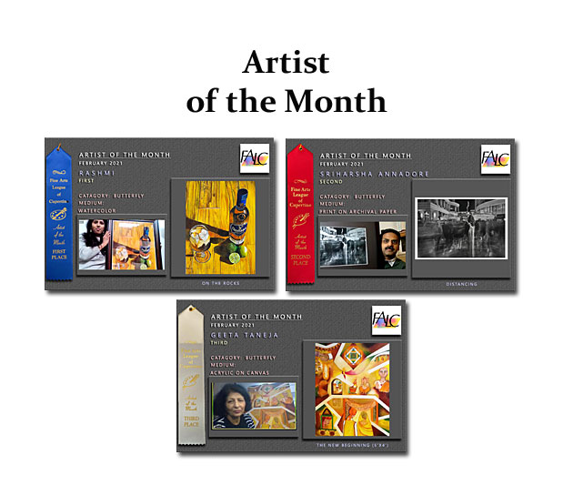 To participate in FALC sponsored shows and exhibits, one must be juried in as a exhibiting member. Artists who have submitted 3 pieces of original art which meet with the approval and acceptance of the voting members will be awarded "Exhibiting Membership". Jurying in will take place at most meetings.