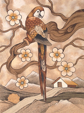 Photoshop Art History Brush to paint a Yellow Macaw pearched in